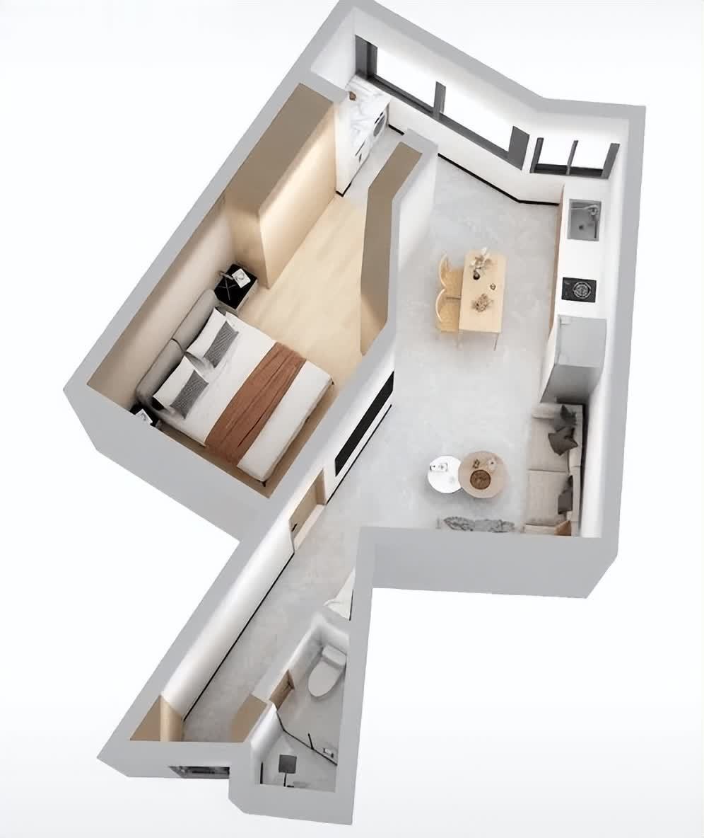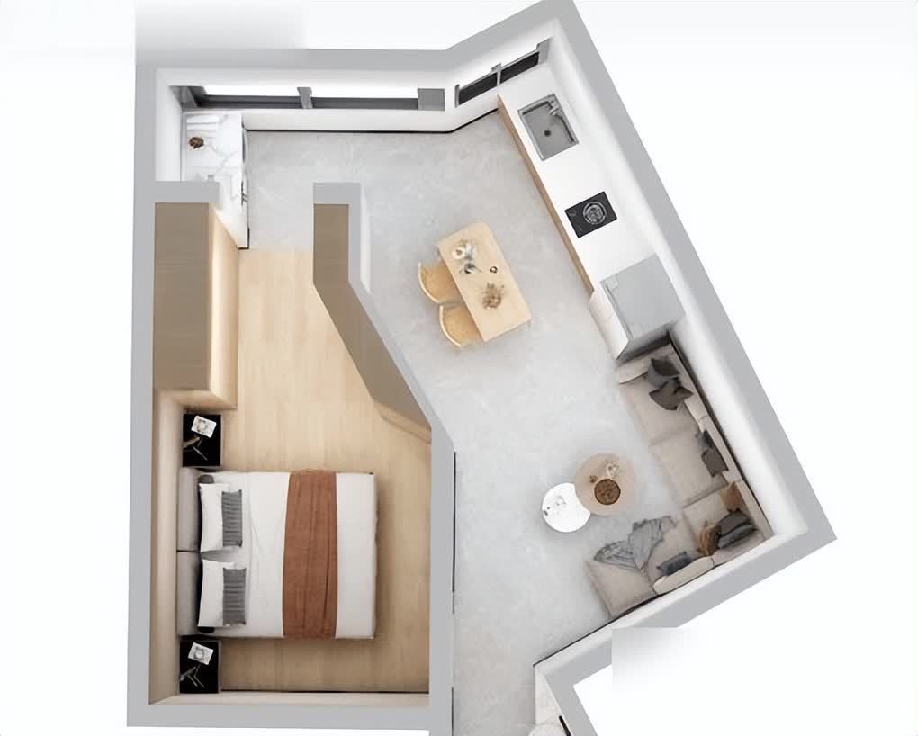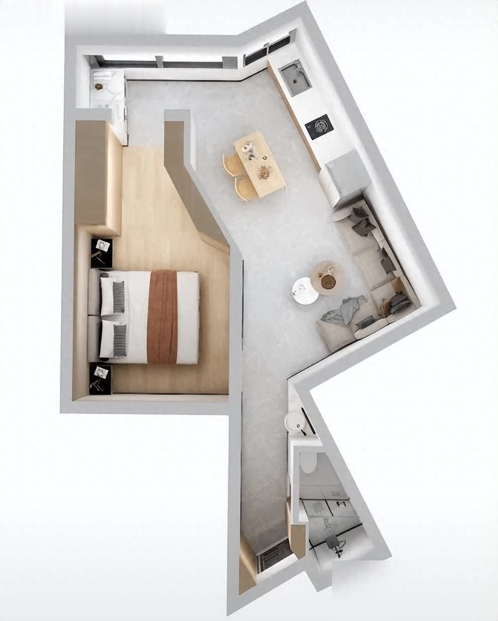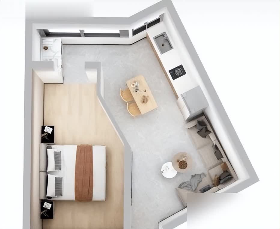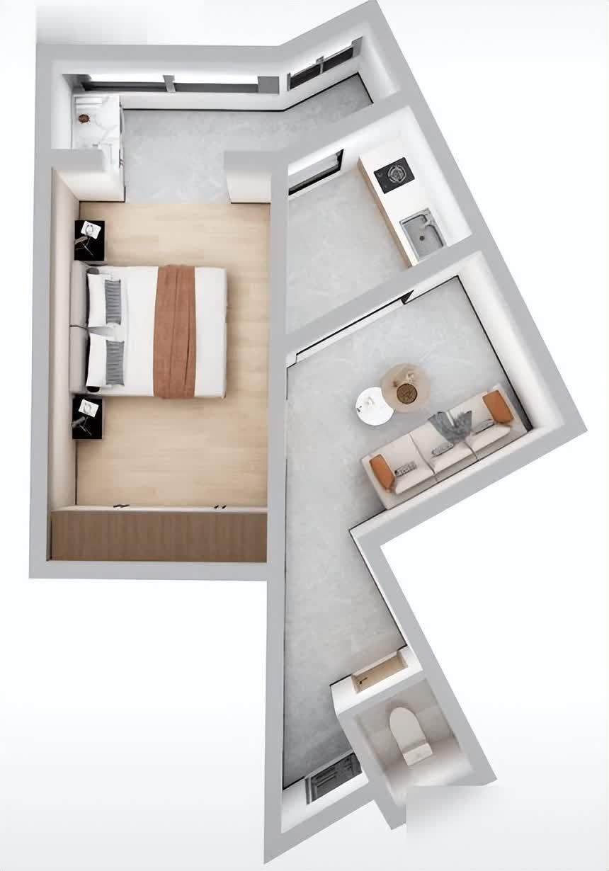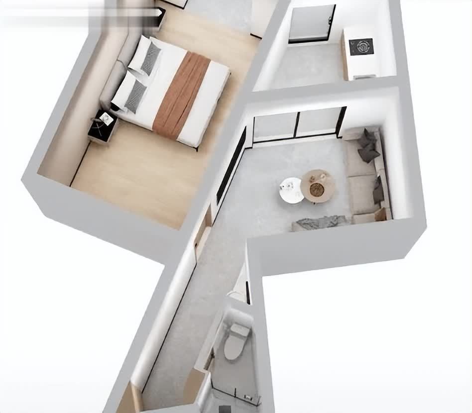 像那种拼拼凑凑的“台灯户型”,进门没地方放钥匙,翻遍包包找半天;卫生间小得转个身都撞墙,有人洗澡其他人就得憋着不上厕所;客厅想放个电视都找不着正儿八经的墙,要么挂在厨房侧面(做饭时油烟直扑屏幕),要么放在地上当“矮脚桌”,坐沙发上得仰着脖子看;卧室衣柜就一排,冬天的羽绒服塞进去门都关不上,换季的被子只能堆在床底积灰——这些破事儿是不是戳中你那点“小房子痛点”了?
