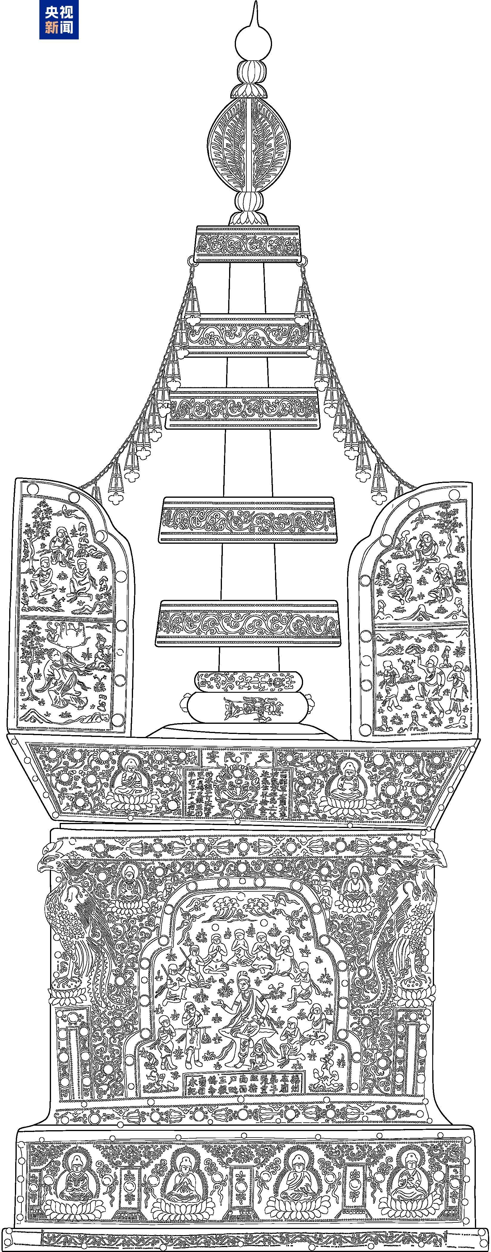 塔体表面捶揲有精美纹饰与图案